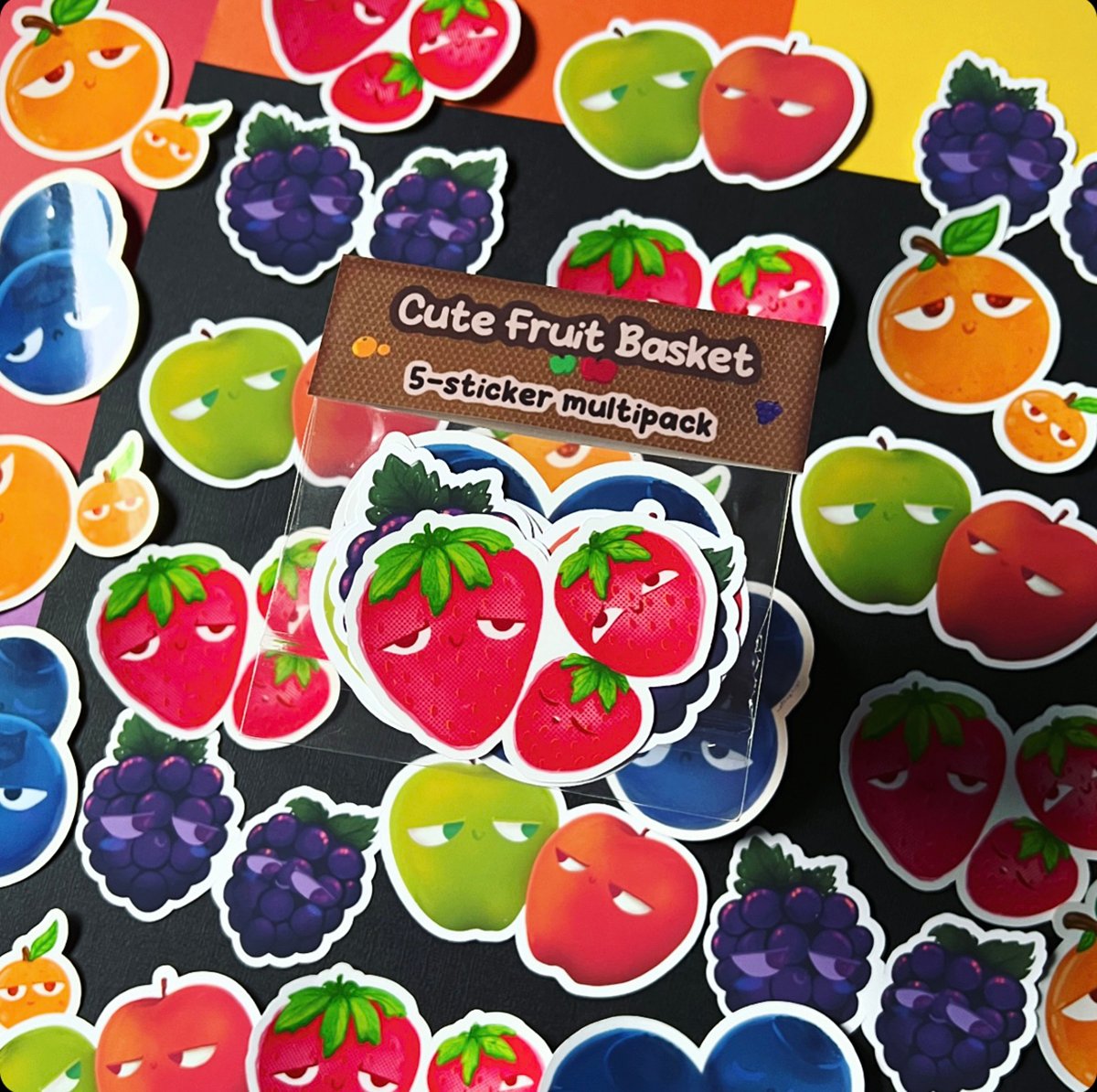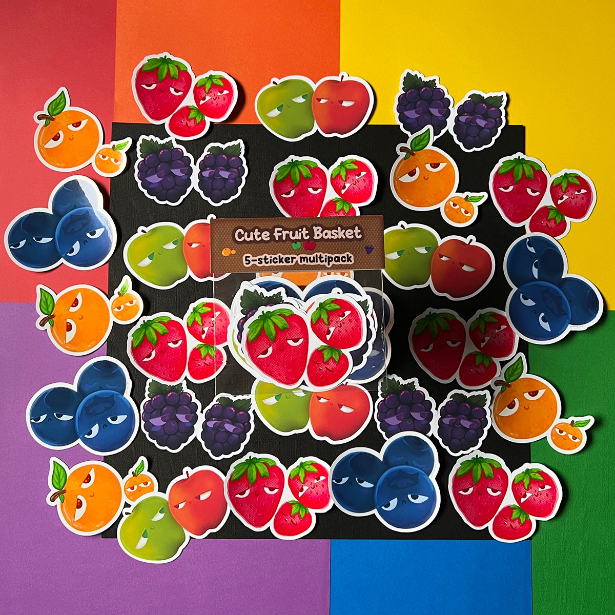 This multi-pack comes with FIVE (5) stickers of cute fruits! Featuring adorable oranges, strawberries, blackberries, apples and blueberries, and they are all included in this bundle.